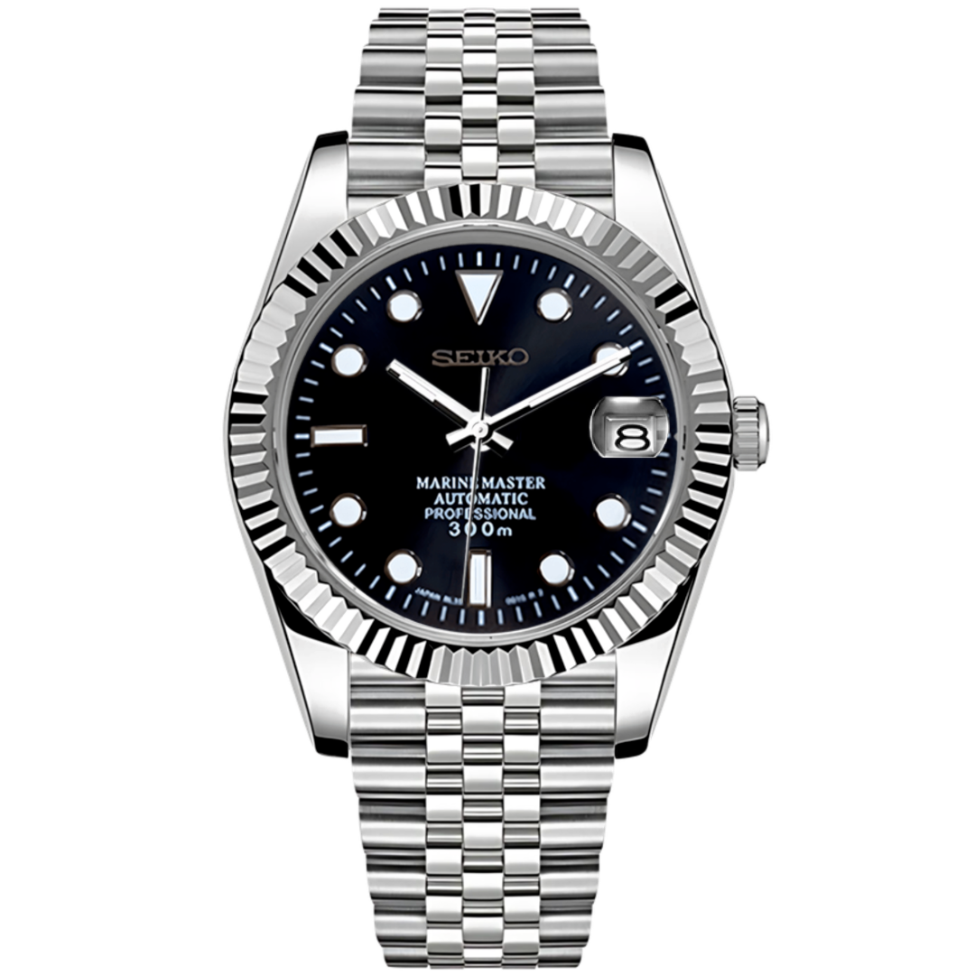 Inspirado en el modelo Datejust, con el alabado movimiento automático Seiko NH35. Un reloj de 36 / 39 mm de alta calidad combinando elegancia con accesibilidad.